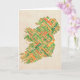 A typography text map of Ireland featuring over 590 cities and towns within Ireland. Green and orange text on a vintage style background.