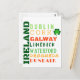 Subway style graphic lists the top cities of Ireland in various fonts and Irish theme colour