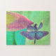 Iridescent Blue Dragonfly on Waterlily Jigsaw Puzzle
