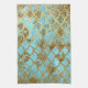Iridescent Blue Gold Glitter Mermaid Fish Scales Tea Towel