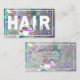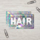 Iridescent crystal business cards. This design features a personalizable business name and store details set against a beautiful modern iridescent crystal-like background with bold white font and outline highlighting your professional hair stylist services. If you have any issues, please feel free to contact me. Check out our shop for more.