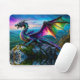 Beautiful and colourful Iridescent Dragon with wings wide spread stands on a mountain