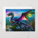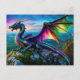 Beautiful and colourful Iridescent Dragon with wings wide spread stands on a mountain