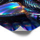 A striking depiction of a radiant dragon adorned with shiny, glowing, metallic scales set against a vivid, colourful background showcasing a range of glowing spectral highlights.