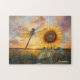 Iridescent Dragonfly Rustic Sunflower Jigsaw Puzzle