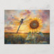 Iridescent Dragonfly Rustic Sunflower Postcard