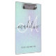 This monogrammed clipboard features a faux iridescent glitter sparkle design with modern script font. Personalise it with your name and monogram.