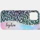 Modern faux ombre iridescent rainbow glitter foil on black leopard spots with background of girly pastel colours of orange, coral, green, aqua, pink, blue, periwinkle and purple with holographic foil wave . This modern safari design will be perfect gift for her. Rainbow iridescent leopard girly glam case.