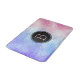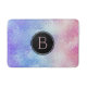 Modern design, iridescent glass ombre background. Black circle with optional monogram.