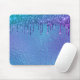 Iridescent Glitter Drips Blue Purple Holographic Mouse Pad