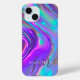 Modern trendy iridescent holographic opal rainbow pink purple aqua teal blue swirl monogram name and initials phone case. Pretty, girly, stylish sparkly foil design. Easily add custom initials and name. Can transfer design to other iphone models or samsung, and android phone cases. If you need help customising this product please use the "Message" button below to contact me, and I will be happy to assist you.