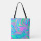 Iridescent marbled holographic texture in vibrant neon and pastel colours. Trippy and distorted image with light diffraction effect in psychedelic 80s-90s vaporwave style.