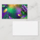 Textural iridescent mardi gras background with spots of purple, yellow and green, decorated with fluffy feathers and shiny beads. Mardi gras holiday.