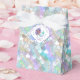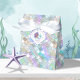 Make waves at your mermaid-themed celebration with this dazzling birthday favour box! Covered in a watercolor-style mermaid scale pattern in shades of purple, teal, and seafoam green, this sparkling design adds a magical underwater shimmer to any present. The front features a custom label shaped like a clam shell, perfect for personalising with your child’s name and birthday details. Ideal for birthday gifts, party favours, or matching themed supplies, this pattern brings the ocean fantasy to life — one splash at a time! Search ID1144 to see coordinating products in this design set.