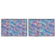 A blue, orange, gold and purple iridescent, metallic geometric design perfect for a pillow case.