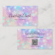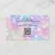 Trendy and modern, this holographic business card features your name or business name in script typography set against a stylish iridescent opal glitter background. It is perfect for professionals in the beauty industry and beyond (esp. nail specialist, nail technician, manicurist, makeup artist, beauty salon owner, hair stylist, beautician, aesthetician, and more). You can personalise the front with your name and title (or website address/location) and add your contact information (including website address and social media accounts), scannable QR code on the back.