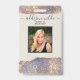 Iridescent Purple Gold Glam Glitter Salon ID Badge. This design features a classy signature script style font set against a beautiful modern iridescent sparkle background. Perfect for a beauty salon, hair stylist, makeup artist, or cosmetologist.