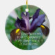 A photo of a purple iris on a blurred green background with text "A flower does not compete to the flower next to it. It just blooms"
