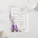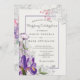 Springtime with delicately watercolored lavenders, grey, and pink. Subtle and supremely elegant floral abundance. Lilac blooms with Iris invitation front with a tasteful combination of fonts. Clouds of lilac blooms cover the back, primarily in soft grey with lavender purples and soft pink.