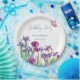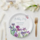 Iris flowers Birthday Party Paper Plates with blue text and watercolour