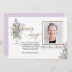 The Iris Bouquet Sympathy Thank You Memorial design has a florist arranged bouquet of iris filled with palm leaves, eucalyptus and tiny baby breach in gold look. To the side is the words forever and always in a gold look. The photo goes in a frame also in gold with a smaller part of a iris bouquet in the lower corner.