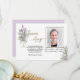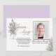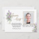 The Iris Bouquet Sympathy Thank You Memorial design has a florist arranged bouquet of iris filled with palm leaves, eucalyptus and tiny baby breach in gold look. To the side is the words forever and always in a gold look. The photo goes in a frame also in gold with a smaller part of a iris bouquet in the lower corner.