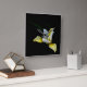 Yellow and white iris flower emerging from a black background.