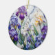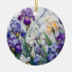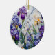 Vibrant Irises: With meticulous attention to detail, this ornament showcases irises in full bloom. Their vivid hues—deep purples, sumptuous blues, and sunny yellows—radiate life and beauty. The delicate petals, graceful stems, and intricate details evoke the grace of real irises.