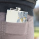 The flask itself is fine. It’s a cheap flask, obviously bought in bulk, however am prepared to overlook that. Given that it is a personalized item, I would have liked to have seen gift boxing instead of the generic packaging. Terrible printing, and/or quality. It’s a cheap, tacky vinyl. It is not cut straight and is also applied in a way that it is overhanging the bottom, causing the glue to catch on items and it will eventually roll and tear, damaging the wrap.