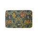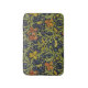 This design features a print of a fabric design created by the British artist William Morris (1834–1896), who is associated with the Arts and Crafts Movement. It depicts blue and orange iris flowers in an elegantly symmetrical pattern. The flower is named after Iris, who was the Greek goddess of the rainbow and a messenger for the Olympian gods, carrying messages down to humanity. The leaves and stems of the iris plants are depicted in blue and green. There are a few yellow birds perching on some of the plants' foliage. The original pattern was designed by William Morris in 1887.
