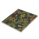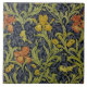 This design features a print of a fabric design created by the British artist William Morris (1834–1896), who is associated with the Arts and Crafts Movement. It depicts blue and orange iris flowers in an elegantly symmetrical pattern. The flower is named after Iris, who was the Greek goddess of the rainbow and a messenger for the Olympian gods, carrying messages down to humanity. The leaves and stems of the iris plants are depicted in blue and green. There are a few yellow birds perching on some of the plants' foliage. The original pattern was designed by William Morris in 1887.