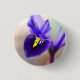 Badge with closeup photo of blue Iris reticulata flower in spring