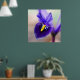 Poster with closeup photo of blue Iris reticulata flower in spring