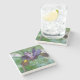 The coasters are gorgeous, a quality feel and heavy weight. They look like a precious archeological find. A rustic stone juxtaposed with a modern floral black and white print. I like the way the print goes slightly imperfect on the cut stone edges giving them a kind-of natural beauty.