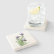 The coasters are gorgeous, a quality feel and heavy weight. They look like a precious archeological find. A rustic stone juxtaposed with a modern floral black and white print. I like the way the print goes slightly imperfect on the cut stone edges giving them a kind-of natural beauty.