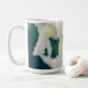 Floral themed Mug featuring a photo of big white iris on green background. White irises are symbols of purity, innocence and patience.