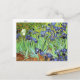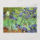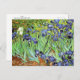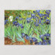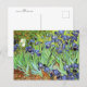A fine art postcard with the post-impressionist painting, Irises (1889), by the Dutch artist Vincent van Gogh (1853-1890) A group of blue-violet iris in the garden, which was influenced by Japanese art.