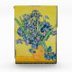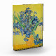 Irises (1890) Vincent van Gogh. Lovely positive still life. Large yellow vase with a bouquet of blue irises on a yellow background. Reproduction of famous works of art images in the public domain.