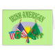 This patriotic Irish heritage design features the United States flag and a green flag with an Irish harp and the caption "Irish American" in green text.