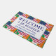 IRISH AMERICAN Family Welcome Doormat with CUSTOMIZABLE TEXT. Stylish, patriotic WELCOME Doormat with the wording WELCOME & BE BLESSED ALL WHO ENTER HERE plus placeholder name. The background is the flag of IRELAND with the map outline of the flag of the UNITED STATES in an all-over tiled pattern. All text is CUSTOMIZABLE so you can amend the wording to suit your needs, eg. add family name, family motto, inspirational quote.