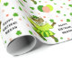 Creative Irish St. Patrick's Day birthday gift wrap, featuring cute cat dancing the jig among the shamrocks. To personalise edit text to add name.
