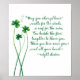 Calligraphy typography design in green with shamrock accent art on left border features words from this Irish blessing, "May you always have walls for the winds, a roof for the rain, tea beside the fire, laughter to cheer you, those you love near you, and all your heart might desire."