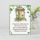 This quaint Saint Patrick's Day Card features a vintage lantern entwined with shamrocks and an Irish blessing about peace, plenty, and happiness. A green watercolor look frame, laced with shamrocks, surrounds the card on the front and back. The exact blessing says: