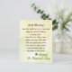 Beautiful inspirational quote customized St. Patrick's Day postcard features an Irish Blessing, "MAY THE ROAD rise up to meet you. MAY THE WIND be always at your back. MAY THE SUN shine warm upon your face; the rains fall soft upon your fields and until we meet again, MAY GOD HOLD YOU in the palm of His hand." The greeting on the back can be modified or deleted for a blank card.*