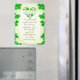 Visual Elements: The card features numerous green shamrocks, including a heart shape made of shamrocks near the top center. The overall color scheme is green and gold.