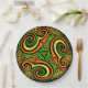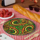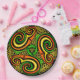 Paper party plates with image of Irish and Celtic knots in colors of red, green and yellow.