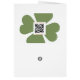 This St. Patrick's Day card has a green and gold four leaved clover on the front along with the colours of the Irish flag. On the inside is an Irish blessing along with the Gaelic St. Patrick's Day blessings, "Éire go Brách" and "Lá Fhéile Pádraig Sona Duit" it is the perfect for sending all of your St. Patty's Day holiday greetings.