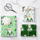Irish Christmas gift wrap featuring funny Santa with a green candy cane surrounded by holiday treats.