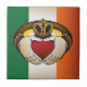 A tribute to Irish culture with the green, white and orange colours of the Irish flag. In the centre is the famous Irish symbol, the Claddagh ring. Citizen Pride slightly changed the Claddagh design by making the two hands form the shape of a heart versus clasping a heart. These elements of the Claddagh symbolise the qualities of love (the heart), friendship (the hands), and loyalty (the crown).