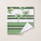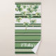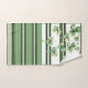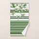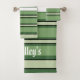 Cute Irish clover hang from the top of this striped bathroom towel set you can personalise for St Patrick's Day and all Irish holidays. Green stripes appear throughout the green towel set.